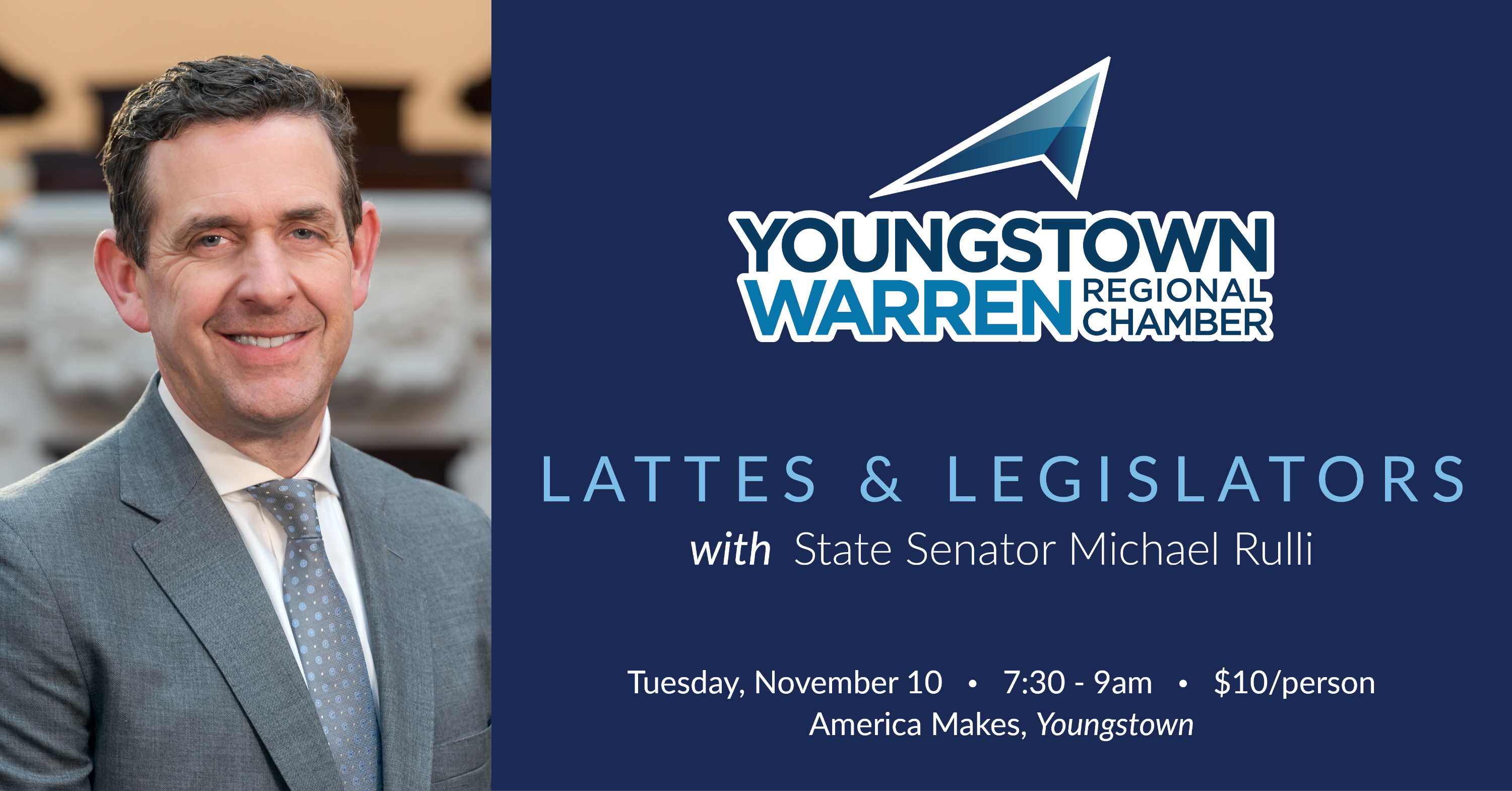 Senator Michael Rulli is serving his first term in the Ohio General Assembly representing Mahoning and Columbiana counties. He has been instrumental in securing funding and advancing policy in support of additive manufacturing, revitalizing the Mahoning River and protecting the Youngstown Air Reserve Station, one of the Valley's largest employers.